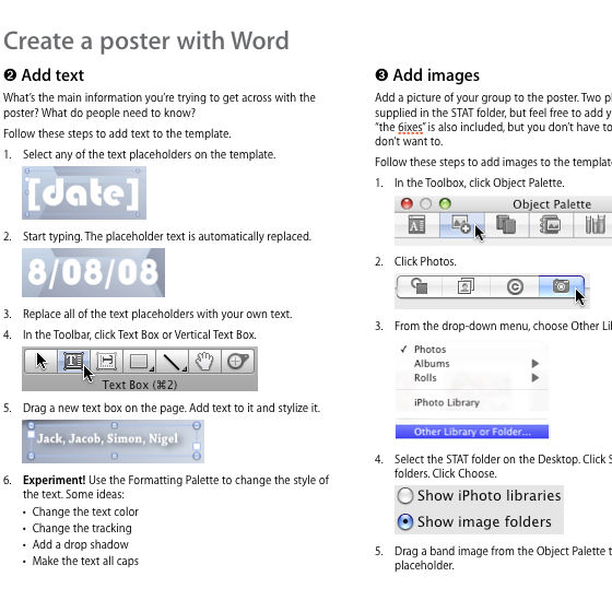 We developed a number of STAT sessions covering a wide range of software products including: Aperture, Final Cut Studio, Motion, FileMaker, Adobe Creative Suite, Microsoft Office 2008, iWeb, iDVD, and Pages.